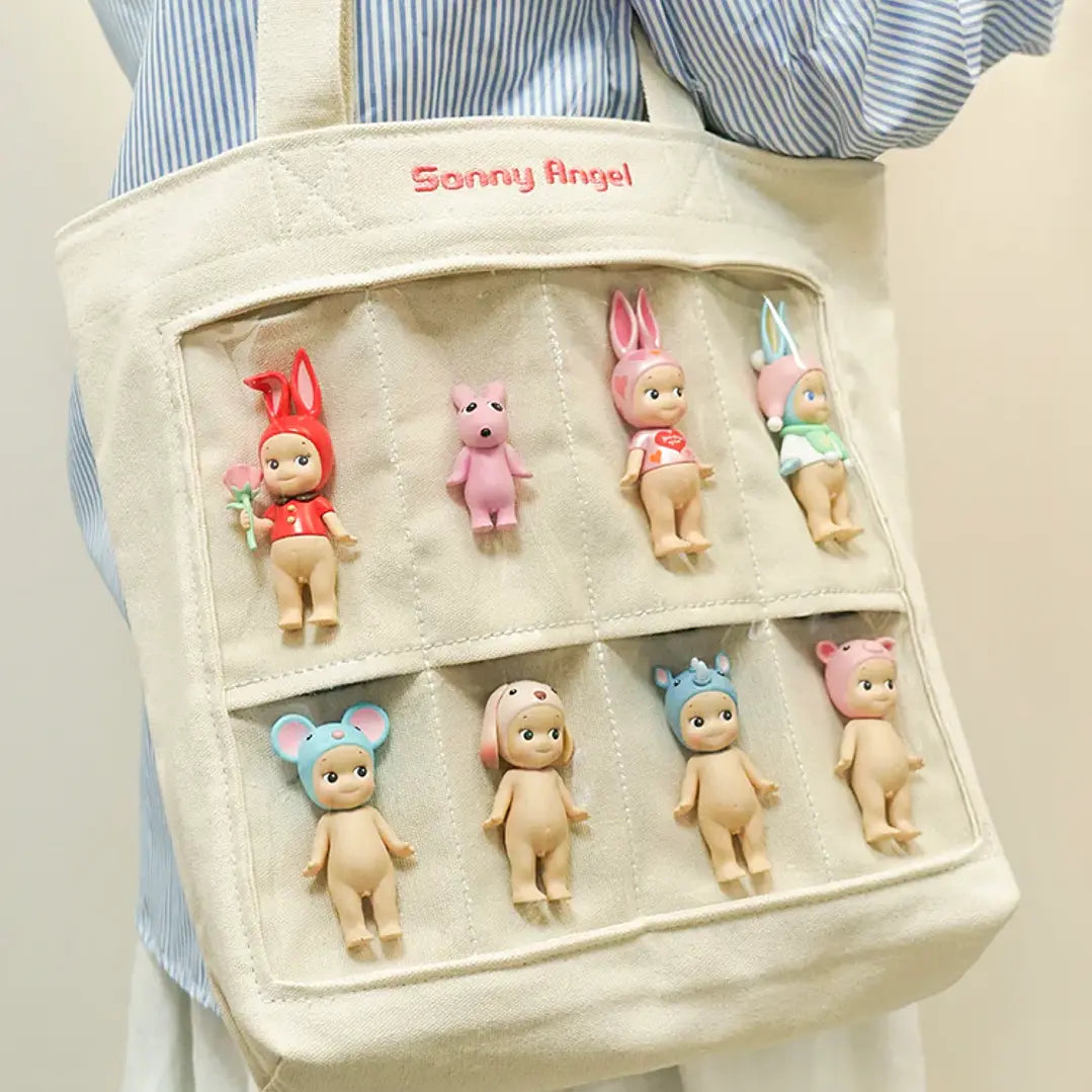 Bolso de algodón con 8 bolsillos de PVC transparente para llevar tus Sonny Angel favoritos.